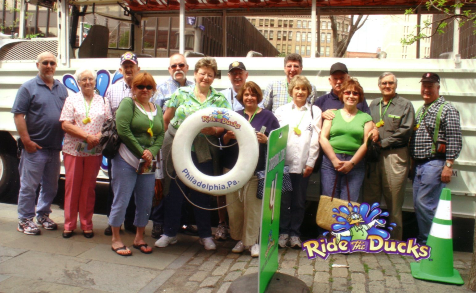 Friday morning we met for breakfast in the hotel dining room before we struck out to see the sights.We walked to the Independence Visitor Center mostly because what better place to start. It was there that we found a duck boat tour sooooo--- we got our tickets and went out to meet our WWII DUKW. Ours finally came in and unloaded the previous tour. We had our picture taken in front of the Duck to, I guess, help in identifing the bodies that might wash up on shore later in the day. The driver, all would agree, was a highlight of the trip. He had a song for every part of the tour and a pun for every occasion. I think I may have taken the wrong seat because when it went down the ramp into the water, I took a shower. At any rate, it was a great tour.
