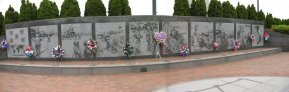 Saturday morning we all went to the Philadelphia war memorials. The first was a very impressive Korean War Memorial. The memorial consisted of a statue,"The Final Farewell" and an area with highly polished stone with scenes depicting different aspects of the war, they encircled several