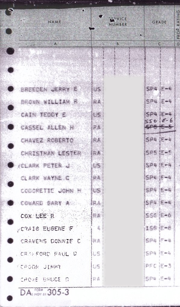 I've left the names, ranks, and MOS. I cropped the remainder because it would be of no use in location. These rosters will probably just serve to jog the memory.