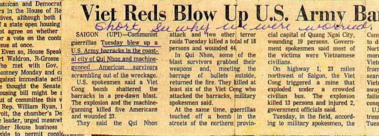 also. It reads "VC BLOW UP BARRACKS AND GUN DOWN SCRAMBLING SURVIVORS. ........ Al Smith |